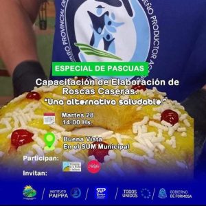 la Comision de Fomento y el instituto Paippa invita a todas las interesadas en participar de una capacitación de elaboracion de roscas de pascuas, a cargo de la capacitadora: chef de nutrifor