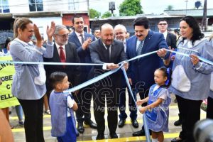 Todo empezó en el barrio Pedro Montoya de la segunda ciudad, donde el titular del Poder Ejecutivo presidió la inauguración del nuevo edificio de la Escuela Jardín de Infantes N° 14 “Capullito de Algodón”.