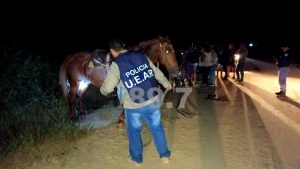 En la noche del domingo, los integrantes de la Sección San Juan de la Unidad Especial de Asuntos Rurales, a solicitud de los efectivos de la Subcomisaria Naineck, brindaron su colaboración a raíz de tres sujetos que montados en equinos, ingresaron a un piquete de varias hectáreas ubicado en la Colonia Paso Báez, con intenciones de sustraer semovientes.
