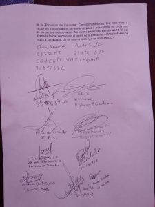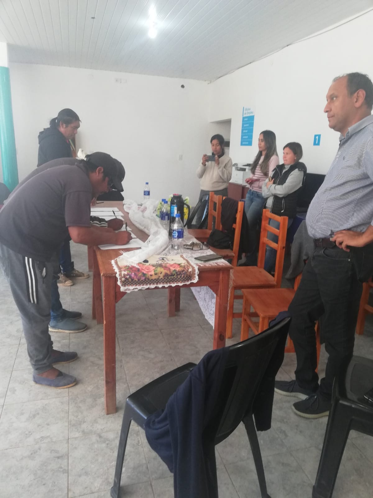 Estuvieron presentes el Intendente del Municipio Yuyi Murdoch junto a sus funcionarios, representantes de la Defensoria del Pueblo, el delegado local del IPS Provincial, el capacitador de la Subsecretaria de Economía Social y el representante de Registro Civil de Laguna Naineck, quienes mantuvieron conversaciones con los portavoces de la manifestación que tuvo lugar casi un mes.